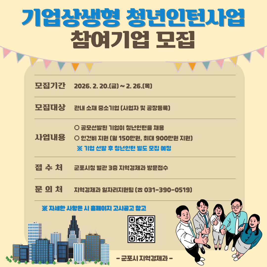 | 제목 | [군포시] 군포 기업상생형 청년인턴사업 참여기업 모집공고 | ||