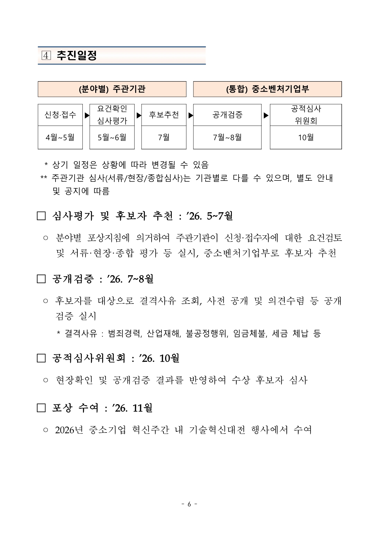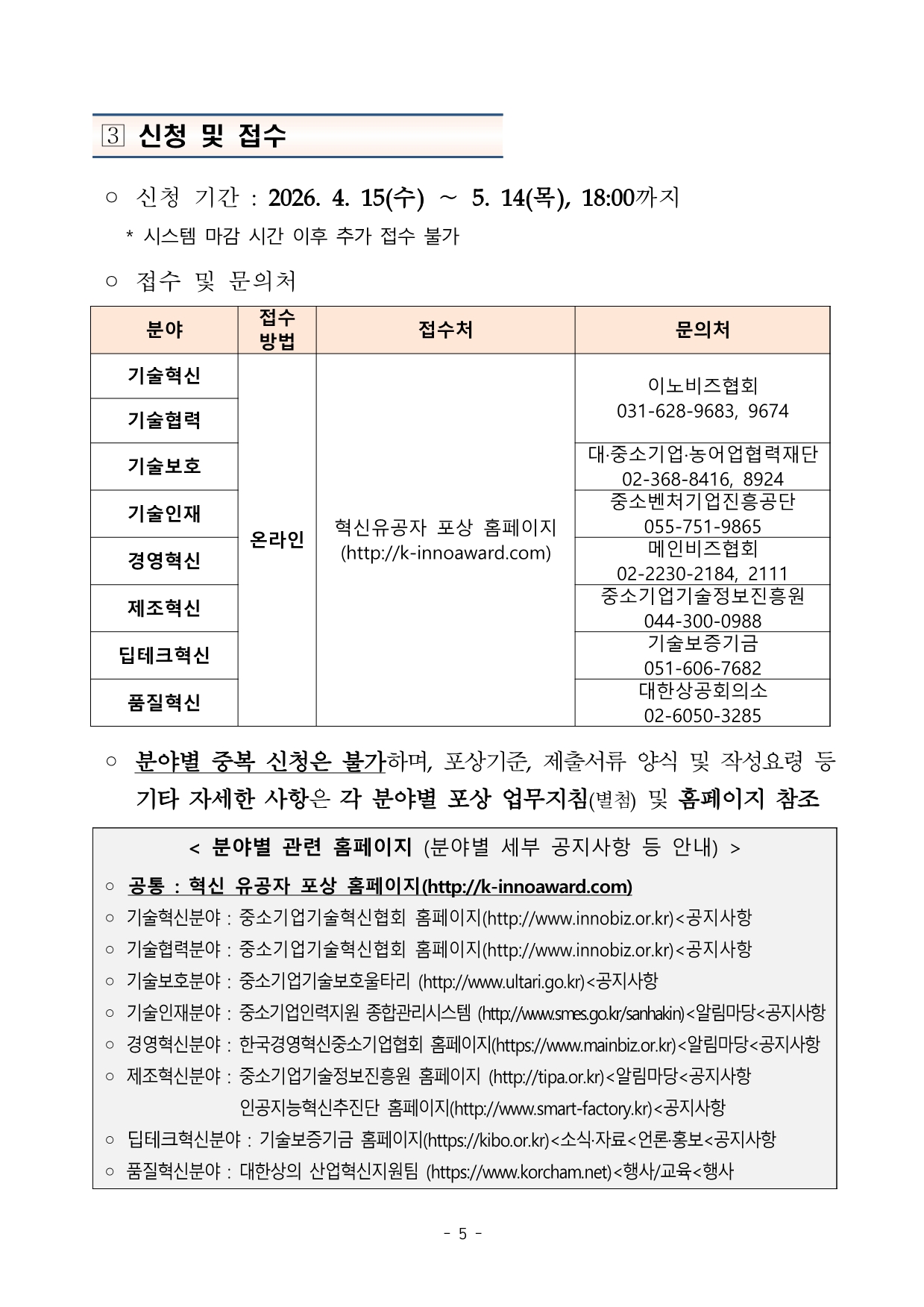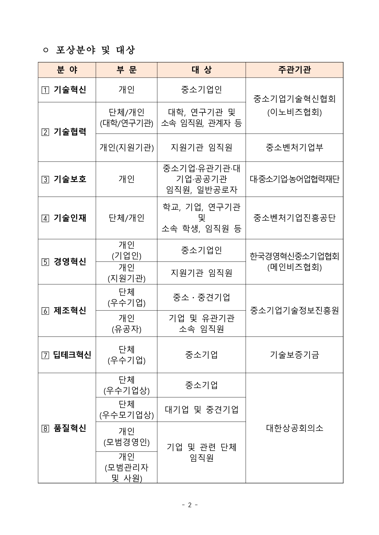 | ‒ | [중소벤처기업부] '2026년 중소기업 혁신 유공' 포상 후보자 모집 안내 |